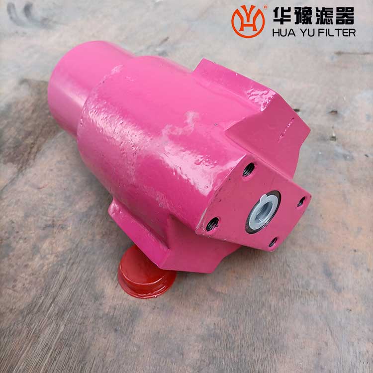 該過濾器的濾芯采用化纖過濾材質(zhì),具有過濾精度高,通油能力大,初始壓力損失小,納污量大等優(yōu)點(diǎn),并裝有壓差發(fā)訊器及旁通閥。當(dāng)濾芯堵塞到進(jìn)出油口壓差為0.35MPa時,便發(fā)出開關(guān)信號,此時應(yīng)更換濾芯。如果不能馬上停機(jī)或無人來更換濾芯,裝在濾芯上部的旁通閥會自動開啟,以保護(hù)系統(tǒng)。