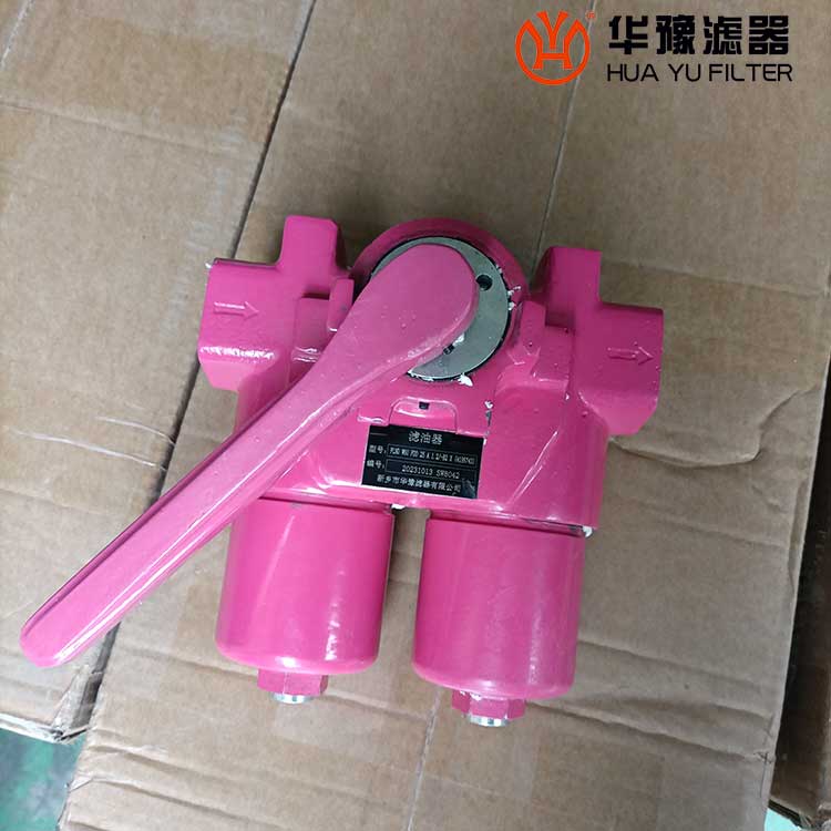 該過濾器是由兩只單筒過濾器、換向閥、旁通閥、發(fā)訊器、擴(kuò)散器等組成。它被安裝在油箱的頂部,可在形同不停機的情況下更換濾芯,適用于連續(xù)工作的液壓系統(tǒng)回油精過濾,用來濾除液壓系統(tǒng)中諸元件磨損產(chǎn)生的金屬粉末以及密封件的橡膠雜質(zhì)等,使流回油箱的油液保持清潔,以利于系統(tǒng)中的油液循環(huán)使用。